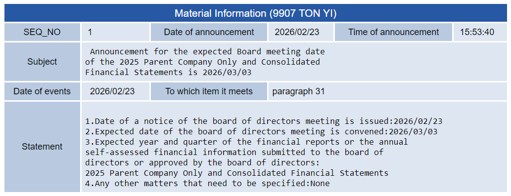 Announcement for the expected Board meeting ...