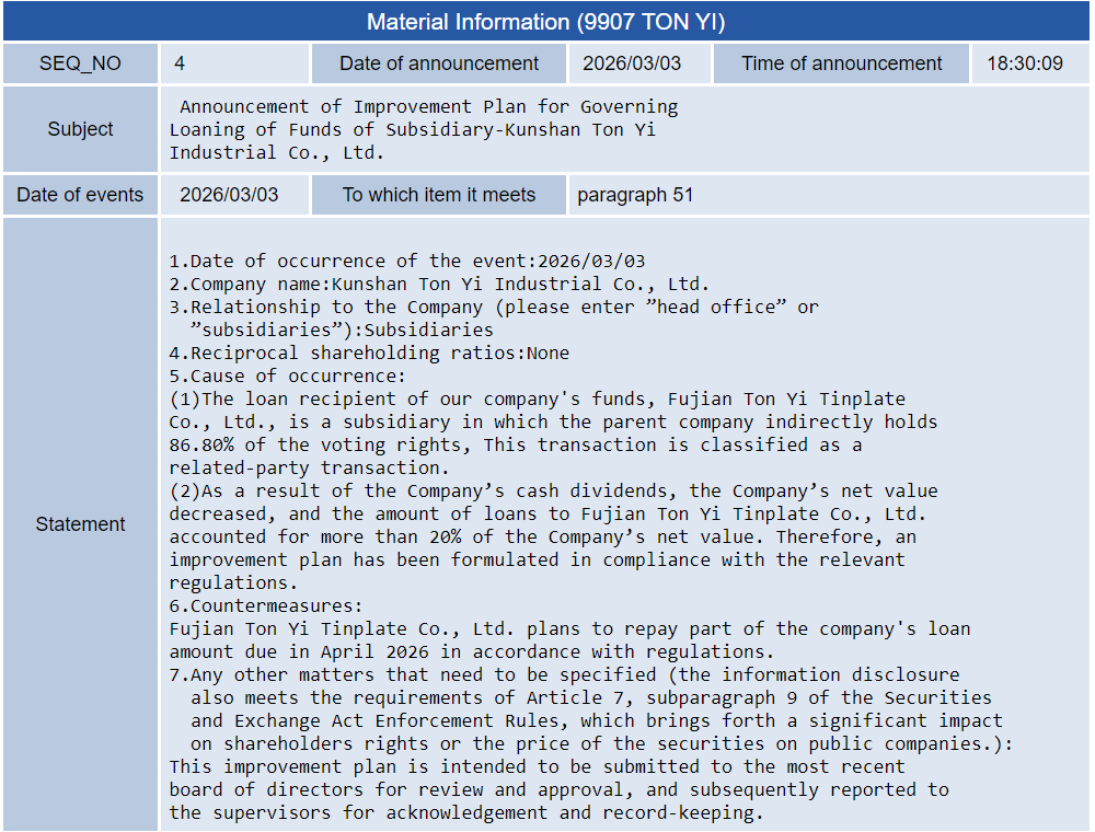 Announcement of Improvement Plan for Governing...