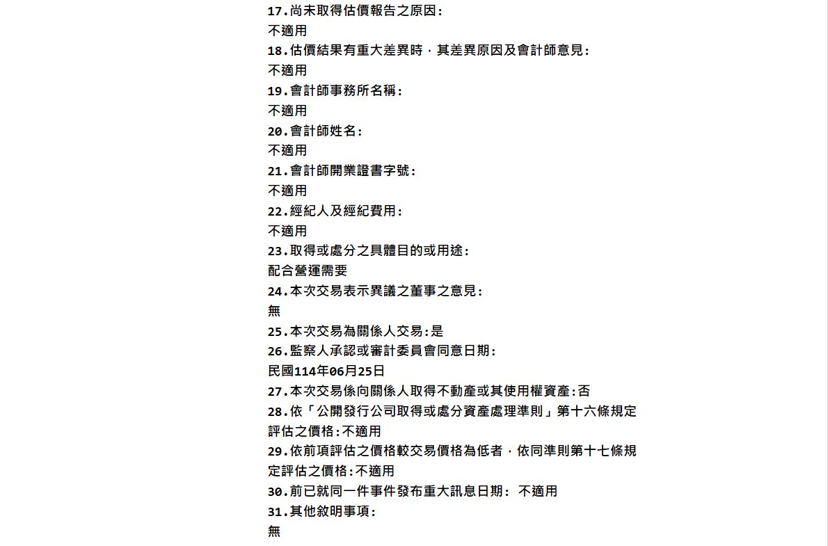 代子公司湛江統實企業有限公司公告處分使用權資產 (減少承租面積)