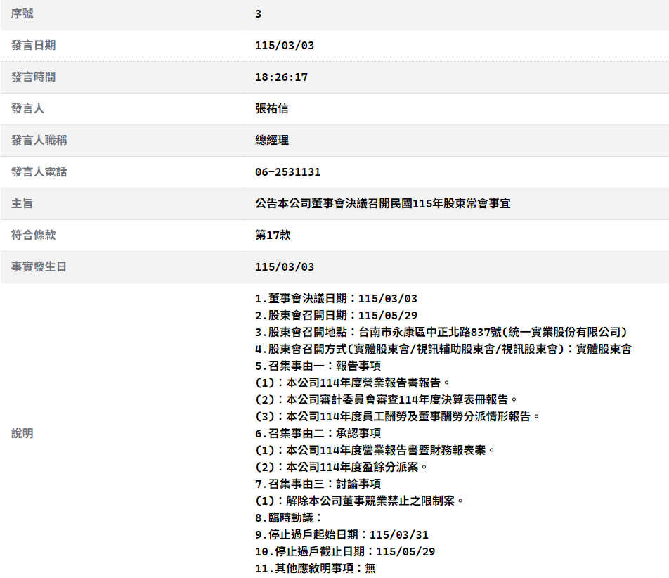 公告本公司董事會決議召開民國115年股東常會事宜